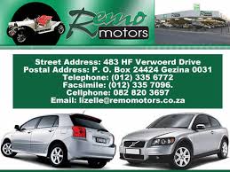 The business was started in 1997 by the Booysen family and together with this father, Johan, Morne and the personnel of Remo Motors has lived up to their motto.We are as good as the service we render. Remo Motors is one of the top performer independent used vehicle dealers in Pretoria. Honesty and loyalty toward their customers is part of the success of Remo Motors. Some of the services provided by Remo Motors, includes Finance through all of the finance houses such as MFC, ABSA and Wesbank and they also have a workshop where clients can have their vehicles serviced. They have a friendly and efficient sales team and together with Morne they strive to assist their customers in every way they can. Key Services: Used vehicles; Pre-owned Dealership; Used vehicles; Workshop Services; Used cars; Automotive; Pre owned; motoring, Tshwane / Pretoria, Gezina.