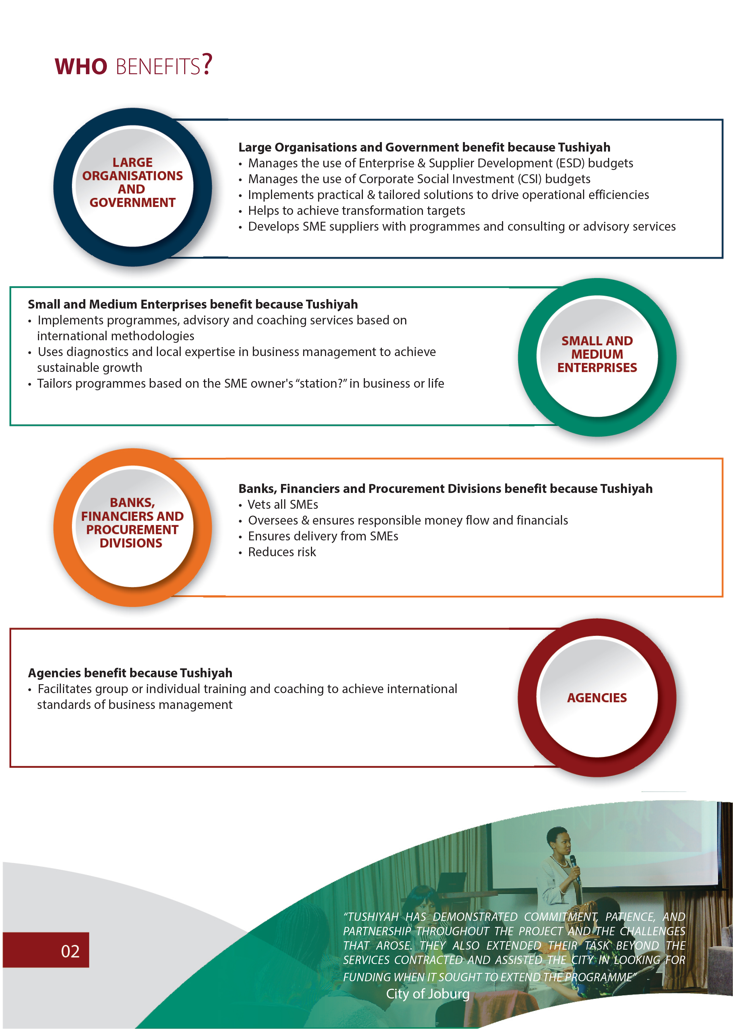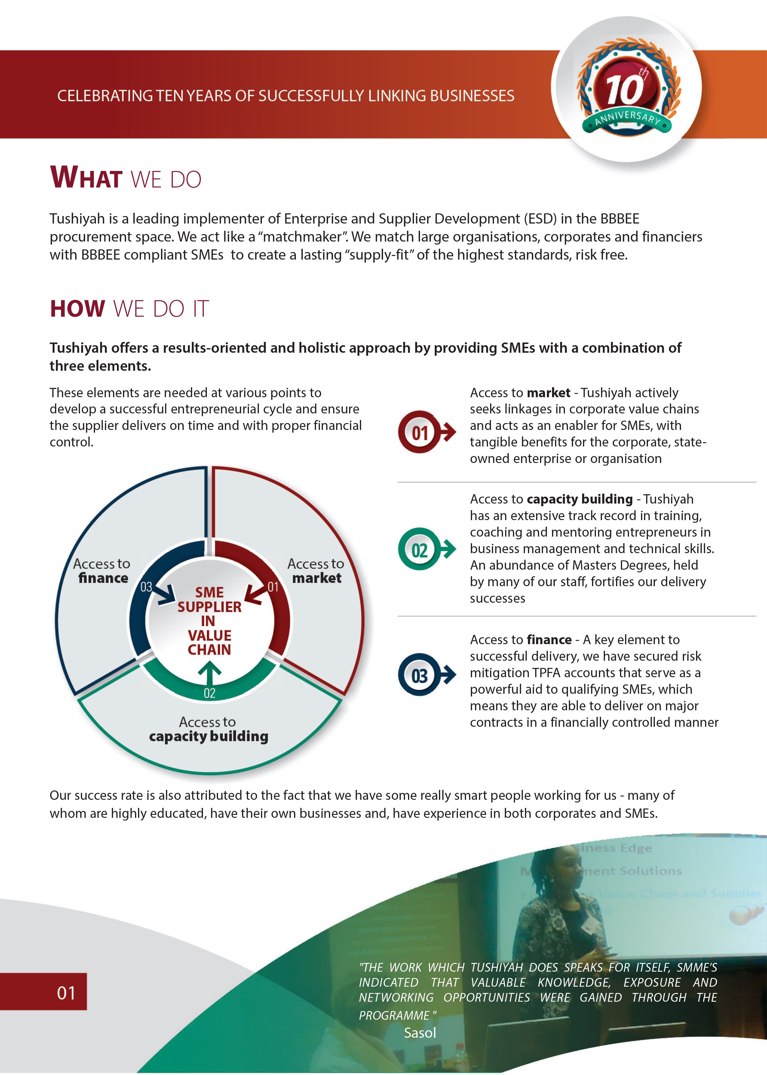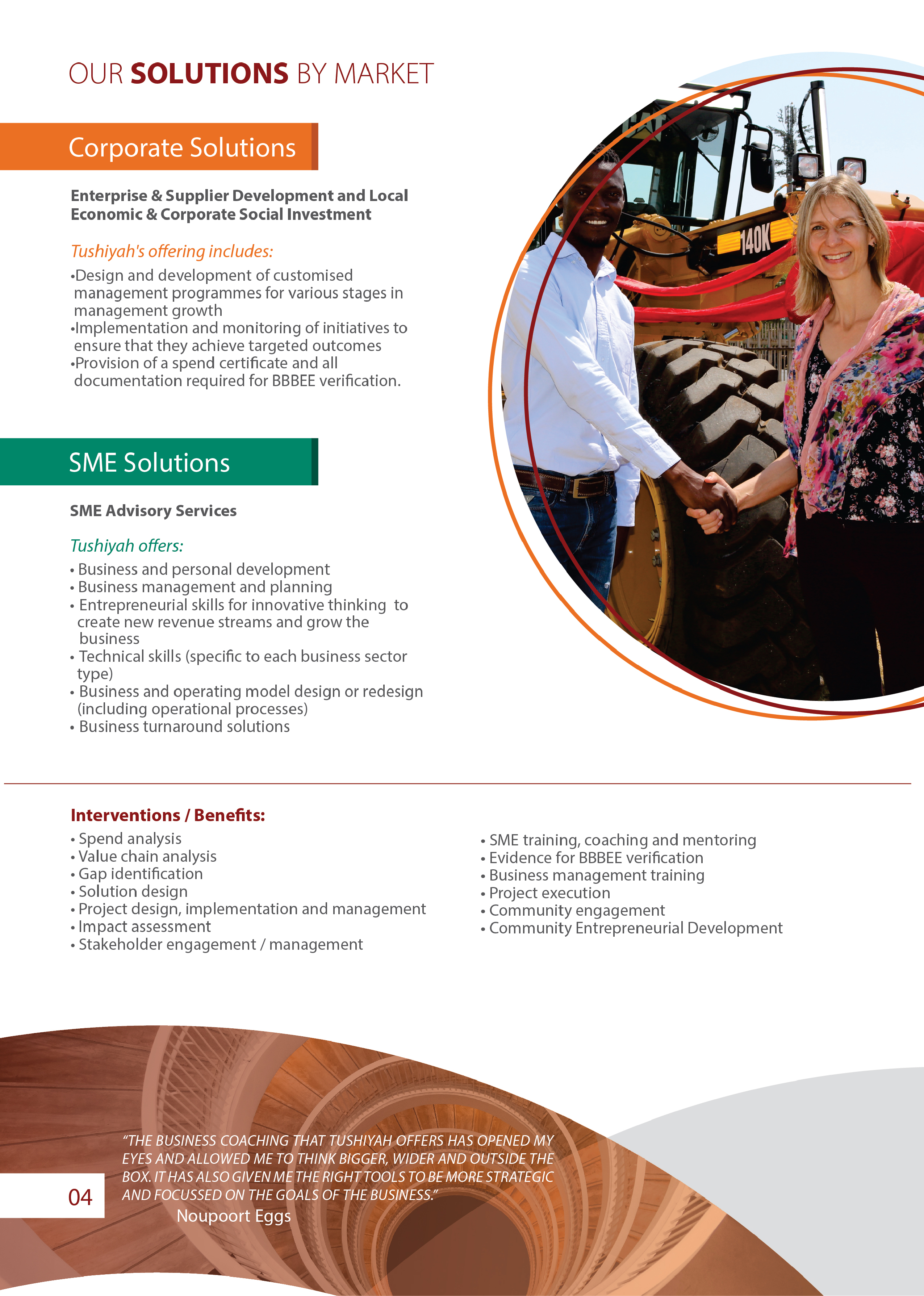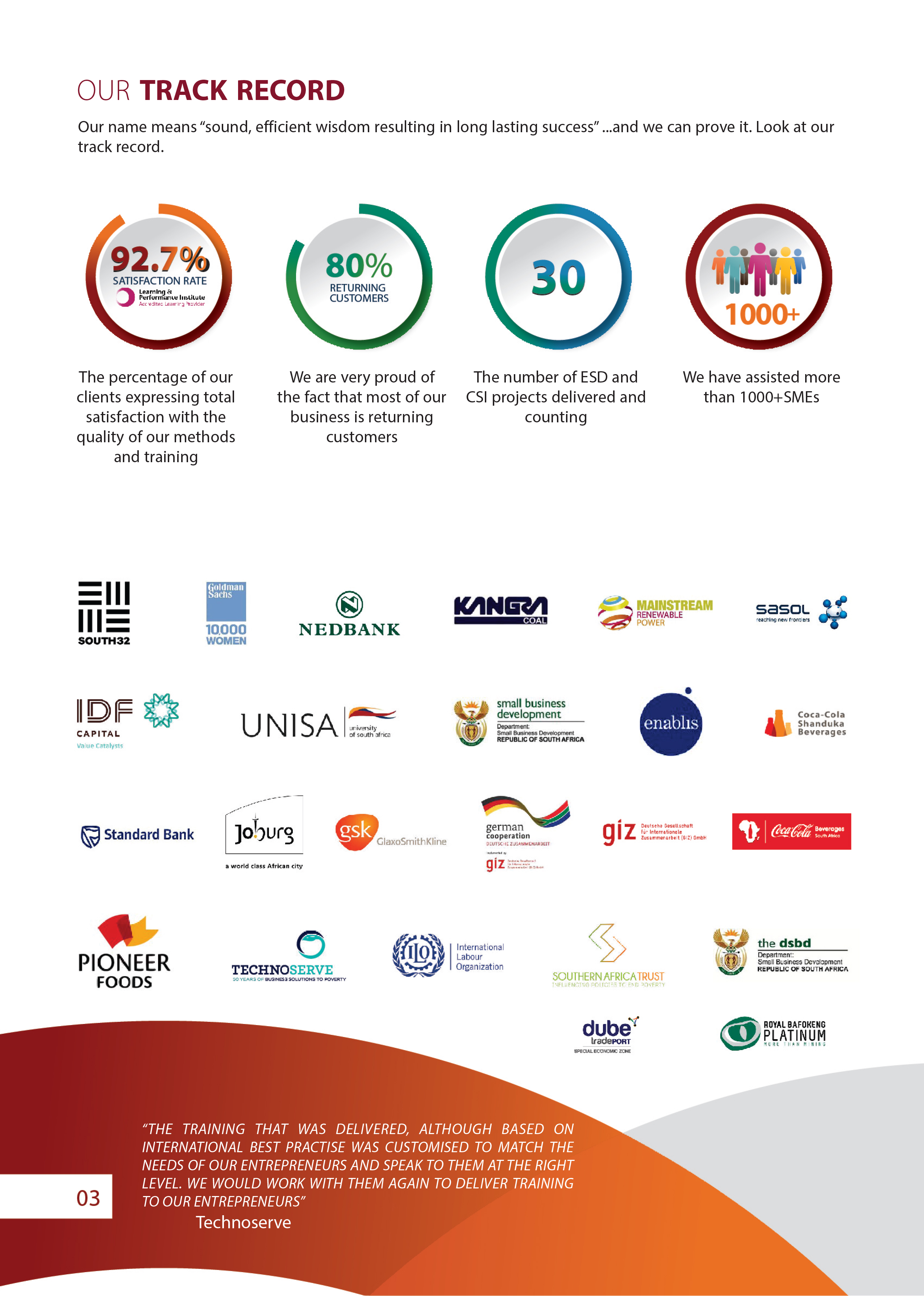We specialise in : Business Management Personal Development Entrepreneurial Skills (this includes innovative thinking to create new revenue streams and grow the business) Technical Skills (specific to each business sector and type)