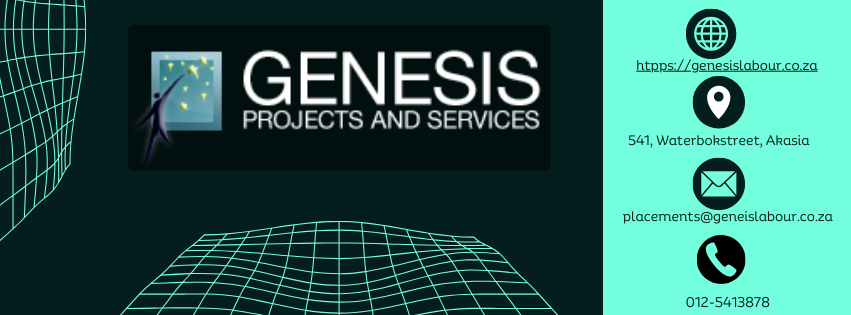 Genesis Projects & Services is a division of the Genesis Group of Companies. Genesis Projects & Services is a labour driven organisation who specialises in the placement of permanent, temporary and contract staff. In addition we also run a Registered Labour Brokerage Service, which includes contracts with workers, management of all statutory deductions, Industrial relations management and Labour advisory services.