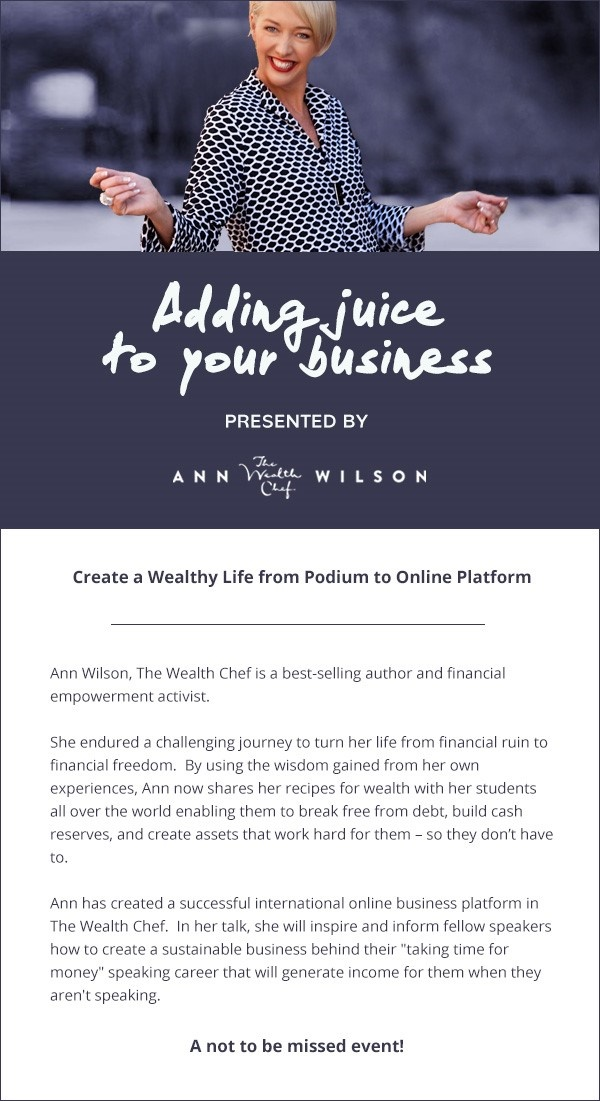 Cost: R650 to CCBC members (normal price R750) and you will receive Ann's 30 Day Money Makeover worth $97 for free (see details below)