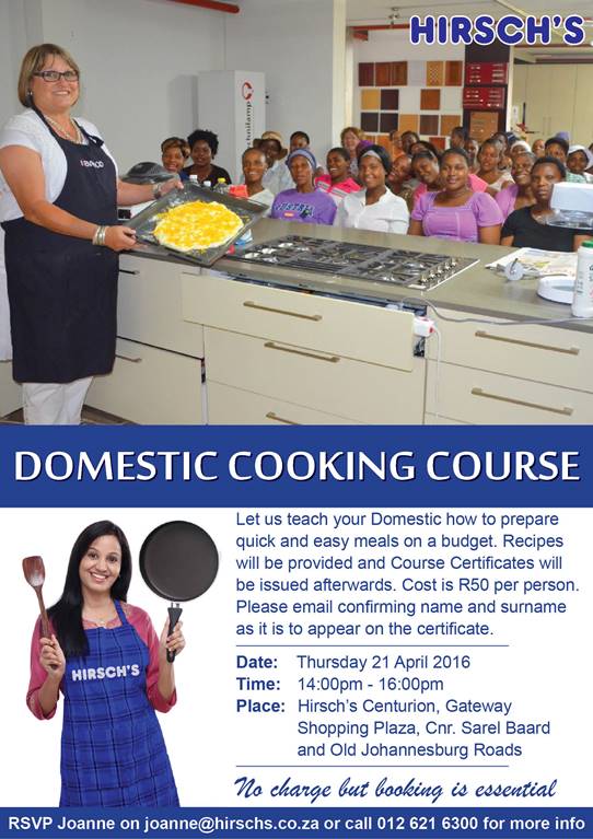 DOMESTIC COOKING COURSE – QUICK AND EASY MEAL PREPARATION AT HIRSCH’S CENTURION