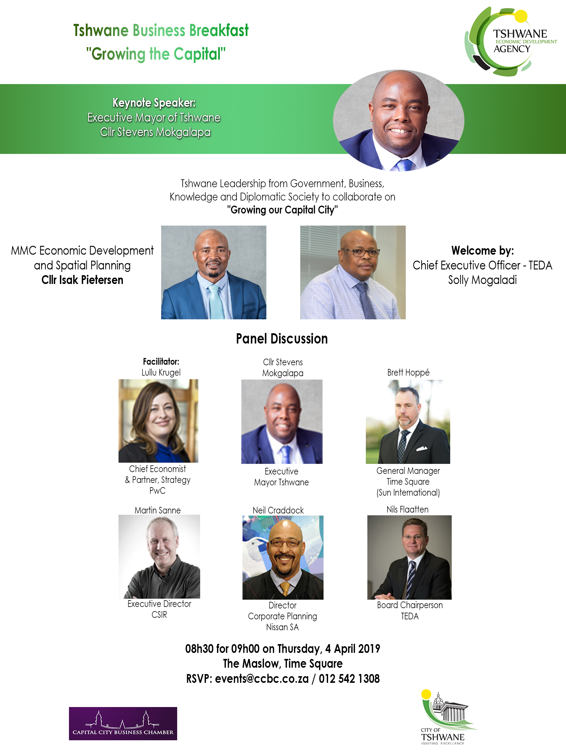 The Capital City Business Chamber (CCBC) is an innovative organization working for the success of the Business Community in the Capital City (Pretoria/Tshwane) of South Africa
