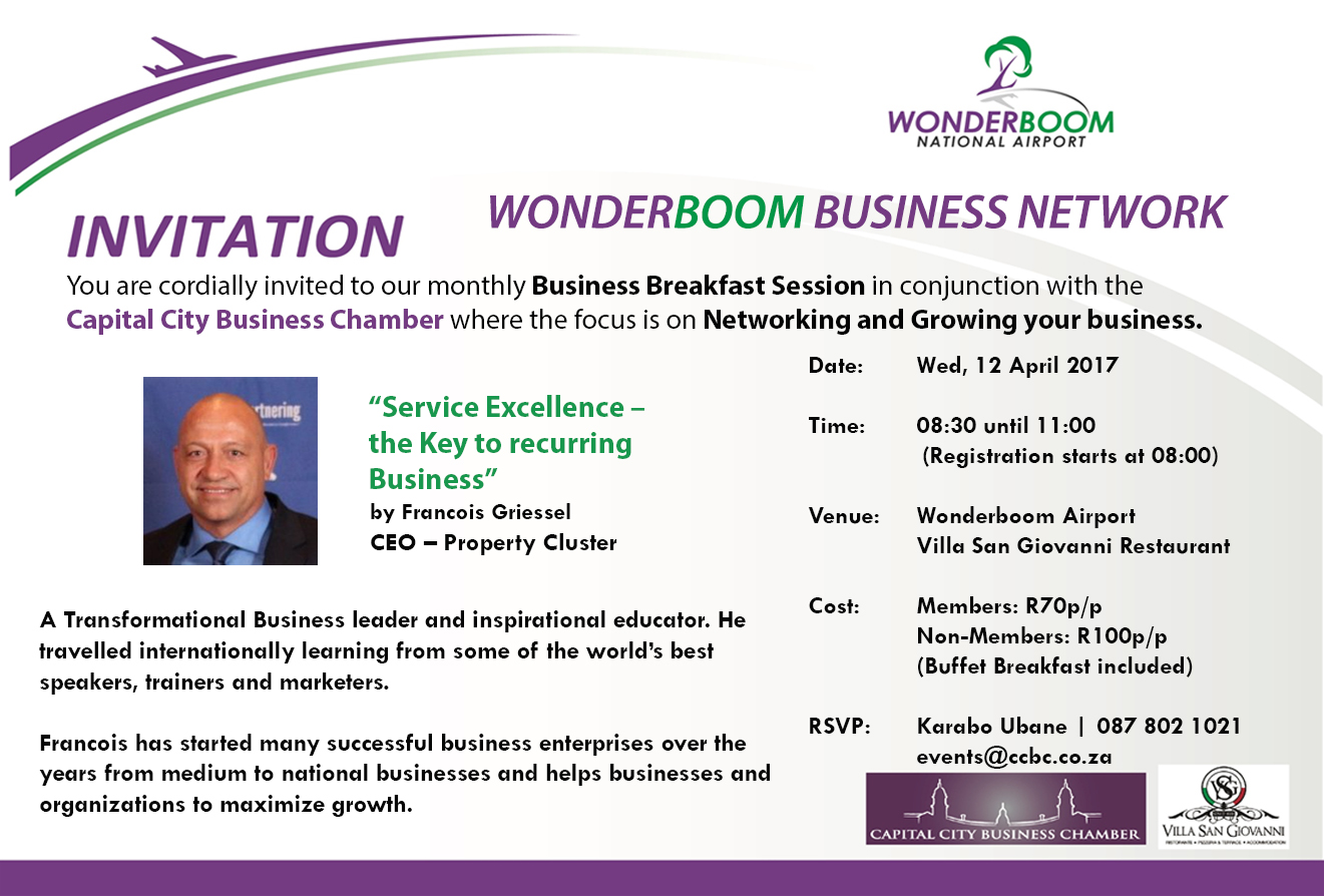 The Capital City Business Chamber (CCBC) is an innovative organization working for the success of the Business Community in the Capital City (Pretoria/Tshwane) of South Africa