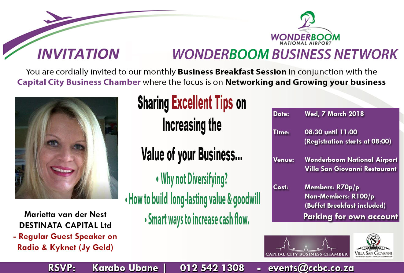 The Capital City Business Chamber (CCBC) is an innovative organization working for the success of the Business Community in the Capital City (Pretoria/Tshwane) of South Africa