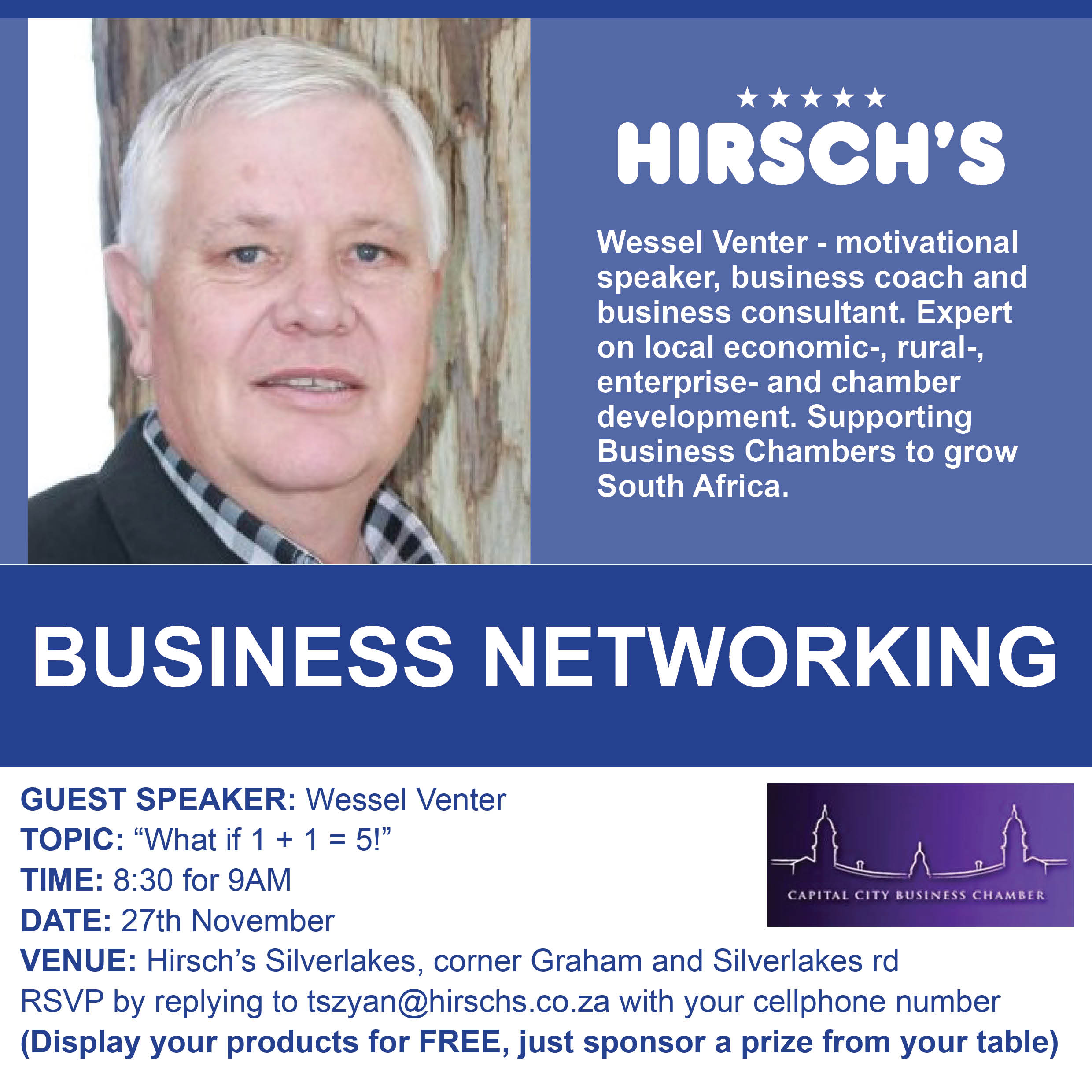 The Capital City Business Chamber (CCBC) is an innovative organization working for the success of the Business Community in the Capital City (Pretoria/Tshwane) of South Africa