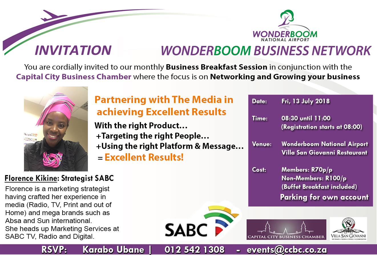 The Capital City Business Chamber (CCBC) is an innovative organization working for the success of the Business Community in the Capital City (Pretoria/Tshwane) of South Africa
