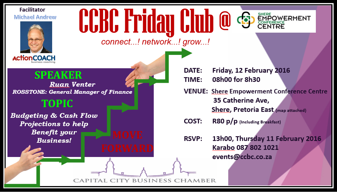 The Capital City Business Chamber (CCBC) is an innovative organization working for the success of the Business Community in the Capital City (Pretoria/Tshwane) of South Africa