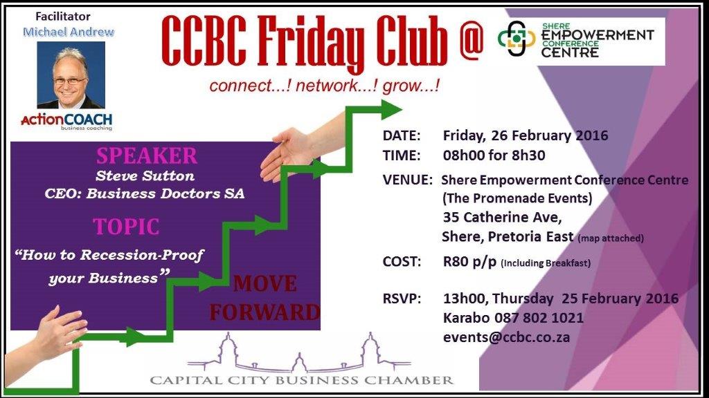 The Capital City Business Chamber (CCBC) is an innovative organization working for the success of the Business Community in the Capital City (Pretoria/Tshwane) of South Africa