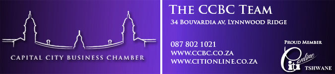 The Capital City Business Chamber (CCBC) is an innovative organization working for the success of the Business Community in the Capital City (Pretoria/Tshwane) of South Africa