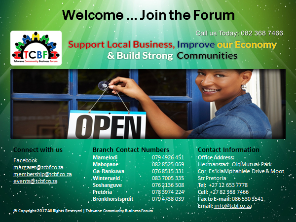 Members of Tshwane Business Forum (TBF) who are running successful businesses will be invited to share their business experience at this forum.